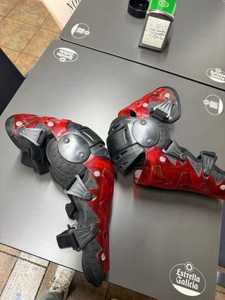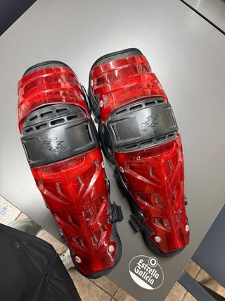 Protecciones de rodilla y espinilla de la marca NO FEAR, diseñadas para motocross. - Color rojo brillante. - Diseño articulado para mayor movilidad. - Cierres de velcro ajustables. - Material resistente y duradero.