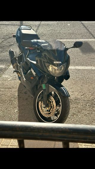 Moto deportiva Honda CBR 600F del año 2000. - Estilo deportivo. - esta para cambiar el kit de arrastre, rodamientos y juntas, y mirar el freno trasero por que esta cogido que eso no es nada, y tapizar el asiento, y algun raspao pequeñico, quitando eso la moto funciona correctamente y va fina, con las 2 ruedas nuevas, diablo rosso 2, frenos traseros brembo enteros, itv en vigor hasta 2027 y 83000km Precio negociable