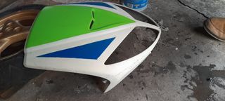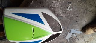 Juego de tapas para Yamaha Jog en azul y negro. Están en buen estado. - Incluye 4 piezas: 2 tapas laterales azules, 1 frontal azul, 1 trasera negra. - Piezas de plástico, con ligeros signos de uso. La pieza más pequeña que sale en la foto negra ya no la tengo .se venden las demás.