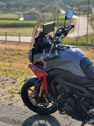 Moto Yamaha Tracer 900 GT en color gris y rojo. Octubre 2019 - Diseño deportivo y versátil. - Equipamiento GT. - Cúpula ajustable. - Maleta trasera incluida. - Cúpula Puig. 46.500 km, maletas laterales y topcase, con la misma llave. Mantenimientos al dia, mimada. Recien cambiadas pastillas delanteras y traseras, kit de arrastre nuevo, bateria diciembre 25. 2 llaves negras y la roja. ITV hasta octubre 2027 Mas info por privado, se valora cambio solo por voge 900 dsx o ds 800.