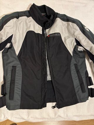 Cazadora de moto Dainese en talla 50. Diseño en color negro y gris. - Cierre frontal con cremallera. - Mangas largas. - En perfecto estado