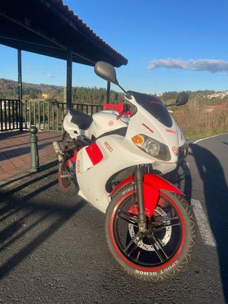 Se vende o se escucha cambio por moto Derbi Moto Rieju RR Spike del año 2005. Cilindro top negro Carburador 24 tipo pwk Escape SCR cross 70-80 Embragues newfren (5discos) Cigüeñal metrakit c39 Rodamientos c4 Puño gas rapido El cilindro fue montado a finales de verano y tiene poco uso y retenes de horquilla recien hechos Se entrega a mayores: Sensor temperatura KOSO Marcador digital (nuevo) Itermitentes (nuevos) Llantas con neumaticos de monte Esta moto pasa itv con las llantas de SM