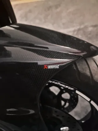 Guardabarros delantero de carbono akrapovic Suzuki B-King , de la marca akrapovic original, no es copia ni chino , solamente tiene ( no roto ) agrietado por tirar la moto atrás en parado con la pinza puesta , fuera de eso esta en perfectisimo estado por donde lo mires. - Material: Fibra de carbono. - Diseño específico para Suzuki B-King.