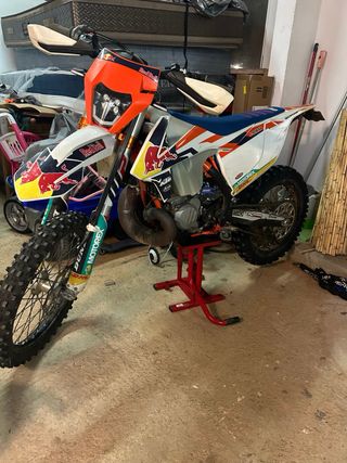 Moto KTM EXC 250 Six Days TPI de 2 tiempos del año 2018. - Con 8.000km - Modelo Six Days. - Inyección TPI. - Motor de 2 tiempos. -itv✅ - se entrega itermitentes , panza mas pequeña , porta matriculas , retrovisores etc.. para poder pasar procima itv - Doy ruedas lisas de recambio a parte de las ruedas de tacos que lleva montadas ahora No mandar ofertas absurdas, no tengo prisa en vender gracias