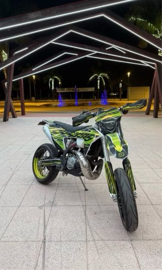 La moto tiene todos los mantenimientos hechos y se encuentra en perfecto estado. 90 horas -Piston y segmentos nuevos. - Aceite nuevo -Juntas nuevas -Revisada entera - Faro LED - Rodamientos ruedas nuevos - Kit supermotard más de 1500€ - Localizador Komobi - Luces LED asiento - Se entrega todos los recambios de serie ruedas completas nuevas,retrovisores,intermitentes y 2 panzas de escape. - Regalo un kit de plásticos Se puede entregar con las ruedas y tapas originales montadas. #gasgas #supermotard #enduro #yamaha #ktm #husqvarna