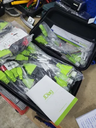 Máquina de diagnóstico para motocicletas JDiag MOTO-01. - Incluye maletín de transporte. - Incluye manual de usuario. - Varios cables y accesorios de conexión.