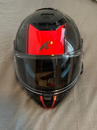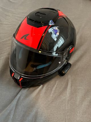 Casco integral Shark Spartan RS + intercomunicador con un diseño deportivo y moderno. - Color negro y rojo. - Material :carbono - Visera clara. - Interior cómodo. - Visor solar