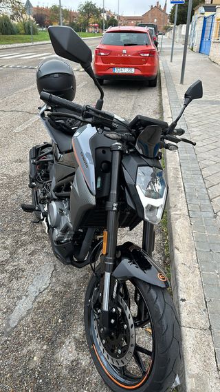 Moto CF Moto 300 NK en buen estado. Km:238 Los papeles y documentos de la moto están en regla . La batería está descargada por falta de uso de la moto. Tiene un pequeño rasguño en la maneta derecha (está reflejado en la última fotografía) Diseño deportivo y moderno. Color gris y negra