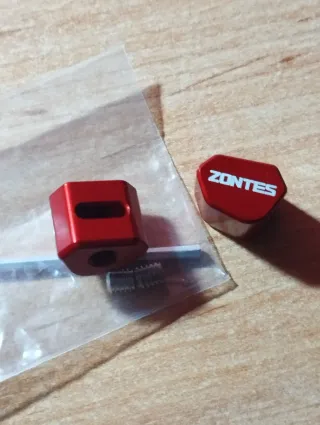 Set de fundas para botones de la marca Zontes en color rojo. - Fabricadas en aluminio. - Diseño hexagonal. - Incluye tornillería.
