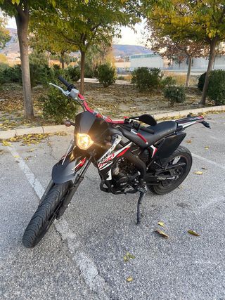 Moto Derbi Senda Xtreme 49cc -Pistón nuevo (rodaje) -Aceite de la caja nuevo -Cilindro 49cc -Carburador 17'5 -Tubo de escape yasuni 50-70 por arriba -Ruedas 17 (Aprilia) -Nuemáticos Michelin supermotard -Puños domino -Protector de manillar Protaper -Manillar 28mm y torretas radical rpm -Asiento recién tapizado -Puño rápido -Porta matrículas corto -Careta nueva -Guardabarros radical rpm -Vinilo personalizado -Sin ITV Adicional - Careta de serie -Manillar de serie -Intermitentes -Porta matrículas de serie -Tubo de escape de serie -Llantas de serie -Nuemáticos motocross