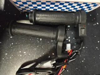 Puños calefactables para moto, nuevos a estrenar. - Color negro. - Incluye interruptor de control. - Cableado para conexión.