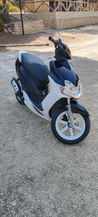 Scooter Yamaha Jog RR en color blanco y negro. - ITV hasta Julio. - Ruedas blancas. - Asiento negro recién tapizado. - La moto va perfectamente me gasté 400 euros hace poco en arreglar algunas piezas del motor para que estuviese perfecta, la moto va casa.