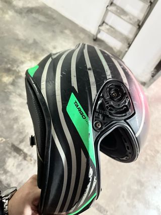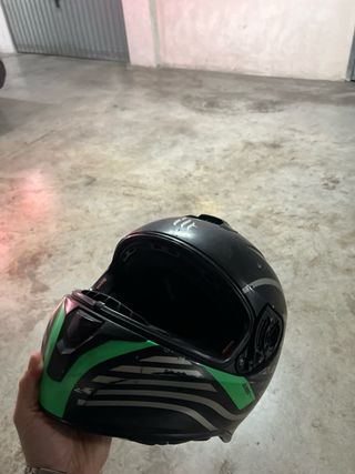 Casco de moto MT negro y verde