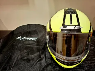 Casco modular LS2 de color amarillo brillante con detalles en negro. Incluye funda protectora. MODELO STROBE Del 2020 - Diseño deportivo. - Visera oscura. - Marca LS2.
