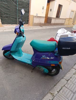 Moto scooter Peugeot Rapido en buen estado. Ideal para moverse por la ciudad. Scooter clásico Peugeot Ray 125 (color morado/turquesa, con baúl trasero grande). ✅ Arranca y funciona muy bien ✅ ITV vigente ✅ Baúl trasero negro incluido ✅ Ideal para ciudad, recados o aprender ❌ No tiene faro delantero (fácil y barato de poner, cuesta unos 50-80€ en desguace o online). Moto antigua pero fiable, se vende por cambio. Precio 200€ (recogida en mano). Más fotos y ubicación por privado. ¡Pregunta lo que quieras!