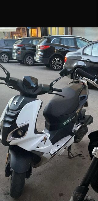 Scooter Peugeot Speedfight 4 Sportline en colores blanco y negro. - Diseño deportivo y moderno. - Asiento cómodo para el conductor. - Manillar ergonómico. -tiene algunos desperfectos en pintura por el uso -26.000km aprox -la moto tiene todas las revisiones en cocesionario -esta cuidada solo se usa para trabajo o recados -La moto esta entera de serie y nunca a sido tocada. -precio algo negociable