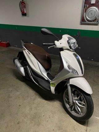 Scooter Piaggio Medley 125 en color blanco y marrón. Ideal para moverse por la ciudad con estilo y comodidad. Se vende en perfectas condiciones y con la ITV pasada en marzo de 2025. Me mudo a Italia y no me la puedo llevar. Se regala baúl trasero, dos cascos casi nuevos y funda. La moto es de marzo de 2017. - Diseño moderno y elegante. - Asiento cómodo para dos personas. - Amplio espacio de almacenamiento bajo el asiento. - Baúl trasero incluido para mayor capacidad.