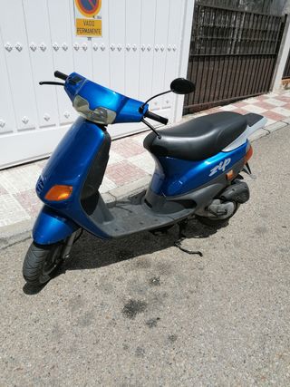 Scooter Piaggio Zip SP 49cc en buen estado. - Modelo: Piaggio Zip SP - Cilindrada: 49cc - Color azul - Llantas en buen estado - incluye motor preparado uno de agua y otro de aire -Lleva ; top negro 74, carrera 16 , un artesanal , un carburador 21 , etc. Esta montado el motor de casa , pero no tiene ITV desde Julio por no uso Preguntar sin compromiso pero gente seria.