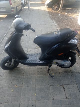 Moto Piaggio Zip en color negro. Un modelo ágil y práctico para la ciudad. Mantenimiento recién hecho batería nueva - Diseño moderno y deportivo. - Asiento cómodo. - Ruedas de buen tamaño para estabilidad. Falta ITV También cambio por coche aumento diferencia