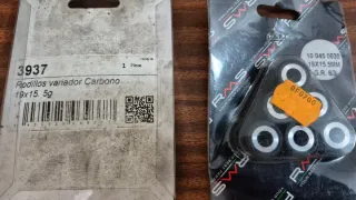 Juego de rodillos para variador de moto. - Medidas: 19x15.5mm - 6,3 Gramos 5e - Medidas 19×15.5mm - 5 Gramos 5e - Correas variador 6e cada una - Compatibles con Gilera, Piaggio NRG y Zip entrego en mano en Sevilla envio a toda España.