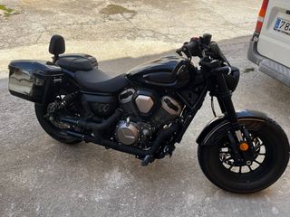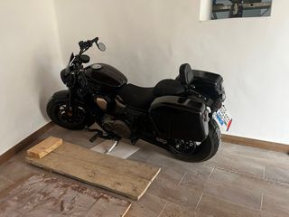 Moto estilo custom en color negro. - Diseño clásico y elegante. - Asiento cómodo para el conductor. - Maletas laterales para equipaje. - Respaldo para el pasajero. - Escape cambiado y original - abs, luz led. - careta, candando para cascos 8.000km garantia oficial 3 años Revisiones en la casa
