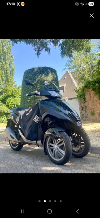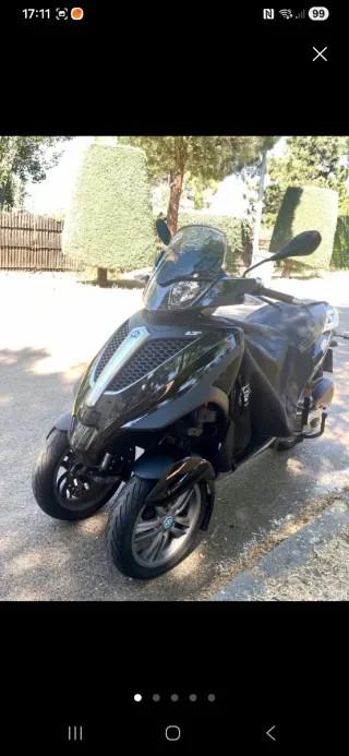 Moto Piaggio MP3 300 LT en color negro. - Diseño de tres ruedas para mayor estabilidad. 278 cc. - Modelo LT. Carnet coche. Regalo manta tucano, 2 cúpulas, barra antirrobo. Si le vale de talla incluyo además: casco, chaqueta y pantalon unisex negro con detalles en azul talla XL conjunto. Incluyo funda protección de polvo favoto con abertura para candado de rueda delantera opcional. Documentación piaggio y llave maestra. Duerme en casa.23.330 km. Batería nueva y aceite nuevo. Admito prueba mecánica. Esta en Valdemoro.Negociable. Incluye seguro hasta julio 2026. Itv julio 2026. Transferencia cargo del comprador.Se vende por enfermedad