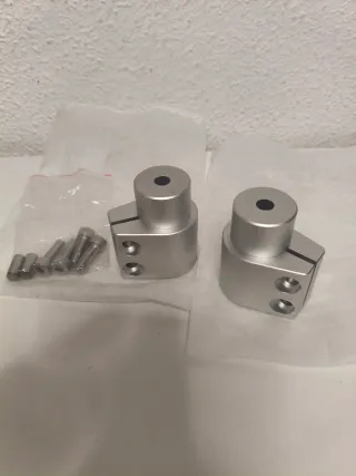 Conjunto de alzas para manillar de Suzuki Inazuma 250. Fabricadas en aluminio plateado.- Incluye tornillería necesaria para su montaje. Miden 6.5cm Están sin estrenar También tengo el asidero de este modelo Hago envíos Bizum
