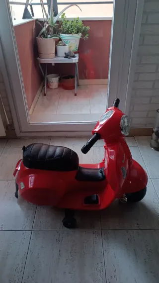 Moto estilo Vespa Piaggio. A batería para niños en color rojo. Ideal para que los más pequeños disfruten. - Diseño clásico de scooter. - Asiento cómodo.