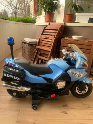 Moto de policía para niños, ideal para que los más pequeños se diviertan. - Diseño inspirado en motos de policía. - Ruedas para facilitar el movimiento. - Detalles de sirena y luces. Hay que poner bateria nueva la venden en amazon