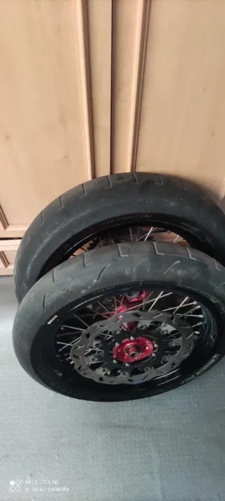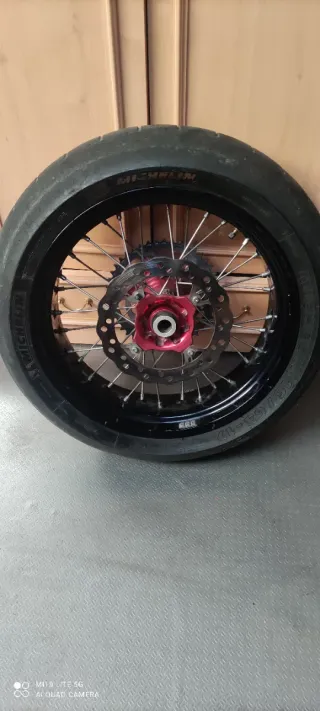 Juego de llantas supermotard - Neumáticos Michelin. - Discos de freno nuevos - Modelo CRF ( Llantas con muy poco uso) -Válido para todas la japonesas - Combinación de colores negro y rojo. Todo lo que sale en las fotos