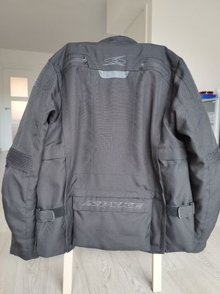 Chaqueta cordura Spyke, talla 2XL de hombre. Chaqueta de moto válida para todas las estaciones del año, chaqueta 2 en 1. Forro térmico interior extraíble, y como se ve en las fotos es desmontable, queda totalmente aireada para usarla en verano. Muy cómoda y práctica. Protecciones en hombros, espalda y codos. En perfecto estado, muy poco uso. El color rojizo es efecto de la foto, refleja la luz.