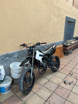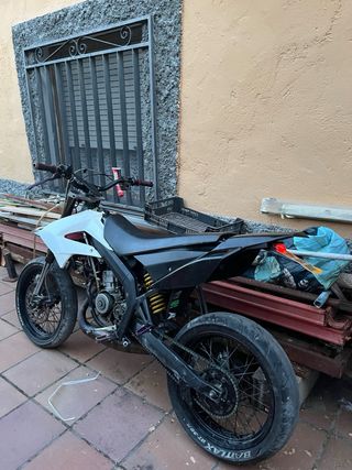 derbi senda con el chasis, horquillas y llantas recién pintadas.platicos y asiento de la xtreme. El motor es un derbi €2 con cilindro de serie,cigueñal nuevo( no tiene ni una arrancada),retenes nuevos,rodamientos nuevos,cilindro nuevo sin uso! LA MOTO ESTA EN PROCESO DE PASAR ITV, ahora mismo no dispone de ella,pero tengo todo lo necesario para pasarlo!!!(luces,portamatriculas,intermitentes, cableado,marcador digital,limitador de rpm,sensores de freno (x2 de atras, x1 delantero)TODAS LAS PIEZAS ESTAN NUEVAS CON FACTURA DE COMPRA DEL 30 DE ENERO,ESTAN SIN USAR. PRECIO POCO NEGOCIABLE precio 1.2k‼️ mas info privado,puedo pasar foto