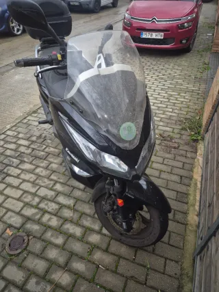 Maxiscooter de color negro con transmisión automática. Ideal para desplazamientos urbanos. - Diseño moderno y deportivo. - Amplio espacio de almacenamiento bajo el asiento. - Cómodo asiento para el conductor y pasajero.