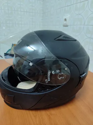 Casco de moto Astone Helmets. - Modelo TR 1000. - Color negro. Casco modular en color negro en buen estado, 1,5 kilos de peso, no tiene desperfectos, se vende por no utilizar, muy poco uso, diseño elegante y deportivo, visera transparente y parasol solar integrado, interior cómodo y transpirable, incluye funda, tiene cierre de seguridad barboquejo.