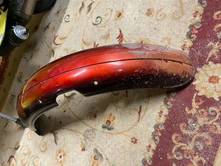 Guardabarros delantero para moto. - Color rojo degradado a negro. - Diseño curvo. - Con orificios para sujeción.