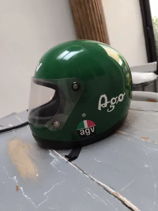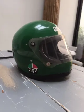 Casco de moto AGV modelo Ago en color verde. Vintage. Original. Ver fotos del interior. Vintage casco. - Diseño icónico. - Visera transparente. - Adhesivo AGV con bandera italiana.
