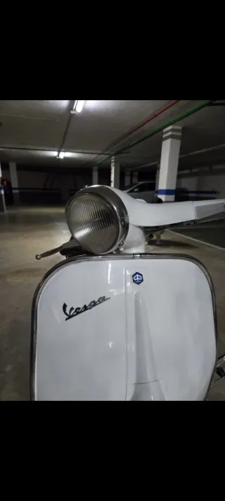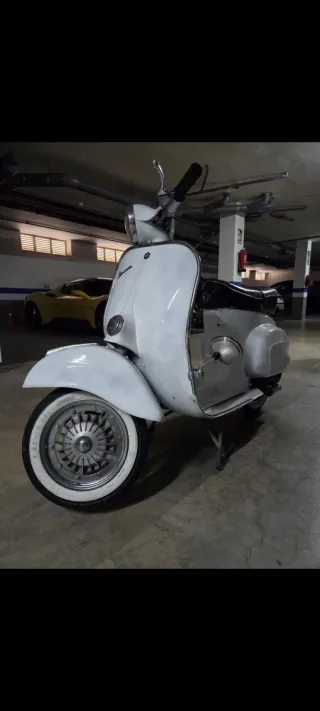 Clásica Vespa 75 U2 en color blanco. Faro redondo, MODELO ESCASO. - Papeles en regla - ITV Y seguro -Escape Polini -Tengo tambien la tapa lateral aunque no sale en la foto Muchas piezas nuevas: -Neumáticos de cara blanca nuevos -Llantas cromadas nuevas -Guias de suelo nuevas -Manetas nuevas -Carburador nuevo -Espejo bordon nuevo Entrego además: -Kit de sustitución de velocimetro -Cresta guardabarros nueva -Soporte para rueda de repuesto nuevo con valor de 100€ ULTIMA FOTO