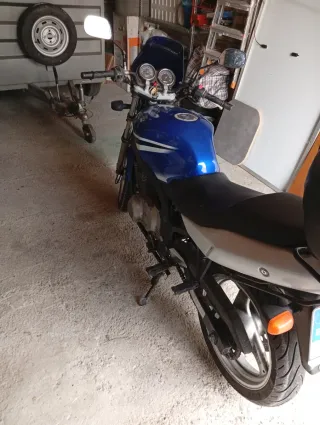 Suzuki GS500 en buen estado. ITV pasada el 12-12-2025 Doi juegos de ruedas enteras Piña de arranque derecha Tiene puesto escape homologado a pasado ITV con el puesto Y el de serie también lo entrego - Incluye baúl trasero.46000km