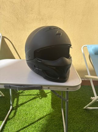 Casco convertible Scorpion EXO-Combat en color negro mate. Diseño moderno y versátil. - Acabado negro mate. - Diseño convertible.