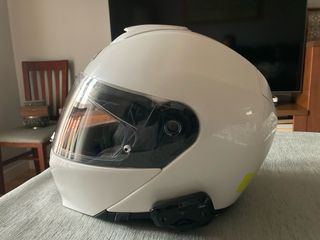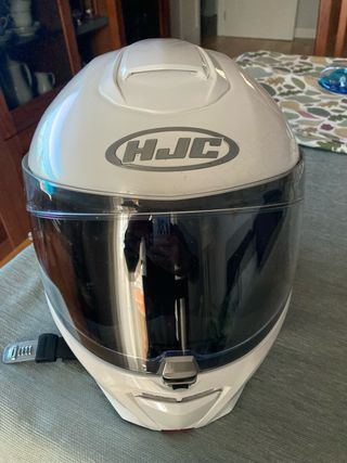 Casco integral para moto de la marca HJC, en color blanco. Se encuentra en excelente estado, como nuevo. Tiene acoplado un intercomunicador marca Cardo. Precio solo casco: 275 € Casco con intercomunicador: 400 Talla mediana - Diseño aerodinámico. - Visera clara. - Cierre de seguridad.