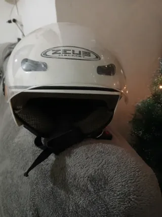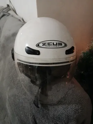Casco de moto marca Zeus en color blanco y talla M. Ideal para protegerte en tus desplazamientos. - Diseño aerodinámico. - Visera transparente. - Interior acolchado para mayor comodidad.
