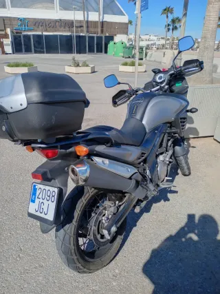 Moto Suzuki V-Strom 650 XT con maleta trasera. - Diseño robusto y versátil. - Asiento cómodo para el piloto y pasajero. - Parabrisas para protección contra el viento. - Maleta trasera de gran capacidad. - 18000 Km. - ITV hasta Julio 2027.