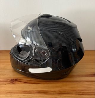 Casco de moto con acabado en carbono. - Talla XL. - Diseño deportivo y aerodinámico. - Visera clara. - Interior cómodo.