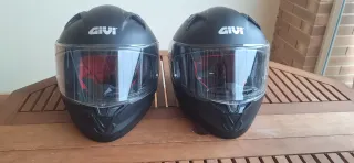 2 Cascos de moto Givi 50.6 en acabado negro mate. Diseñado para ofrecer protección y comodidad. Se venden en conjunto. Los dos como nuevos y con poco uso. - Color: Negro mate. - Modelo: Givi 50.6. - Talla M - Talla S