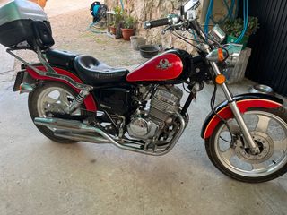 Moto custom Leonart Regal Raptor 125cc en color negro. - Diseño clásico. - Asiento con respaldo para el pasajero. - Maletas laterales incluidas. -Ruedas cambiadas - Radiador nuevo - Tapas laterales y depósito de gasolina nuevo - Disco de freno trasero y pastillas - Batería nueva - Faro de led “doy el original para ITV” -La vendo por cambio de cilindrada