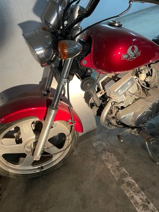 Moto custom Leonart Regal Raptor de 2011. Un estilo clásico y llamativo. - 26.000 kms. - Color rojo brillante. - Asiento doble. - Respaldo para pasajero. - Necesita puesta a punto por llevar 1 año parada.