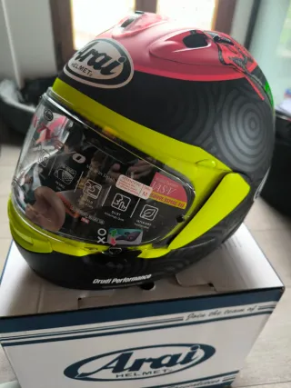 Casco de moto Arai con un llamativo diseño de dragón. Está a estrenar como se aprecia en las fotos En su caja y embalaje - Diseño con dragón en colores vibrantes. - Marca Arai Helmet. RX-7V EVO Talla M No envios No negociable