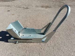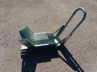 Soporte metálico para moto. - Construcción robusta de acero galvanizado. - Diseño estable para aparcar la moto de forma segura. - Base con orificios para fijación al suelo.