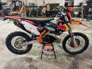 La moto se vende por cambio de cilindrada, la moto esta nueva solo se a usado para dar paseos por pista y poco mas, se entrega con el porta matriculas pequeño aunque este quitado en las fotos , tambien doy kit itv, La itv recien pasada hasta octubre de 2026 ruedas de alante y atras practicamente nuevas con camaras reforzadas.(puestas en las ultimas fotos) rueda de alante michelin enduro medium rueda de atras mitas terra force raya amarilla tiene 130h protector basculante pastillas practicamente nuevas contra pesos manillar manguitos nuevos protector guia cadenas guia cadenas acerbis protector disco delantero protectores punteras escape fmf (se entrega el de serie) suspensiones preparadas por dmx protectores chasis cubrecarter tapa de la inyecion de aluminio protector radiador electro ventilador tirador acerbis en la parte de alante la moto siempre a sido muy mimada y cada salida y todo se la limpiaba y engrasaba y todo, mantenimientos echos al dia siempre mas informacion o mas fotos o videos al privado