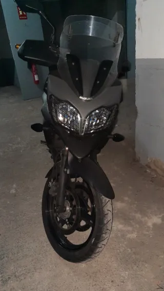 Moto Suzuki V-Strom en color gris y negro. - Estilo adventure. - Transmisión manual.